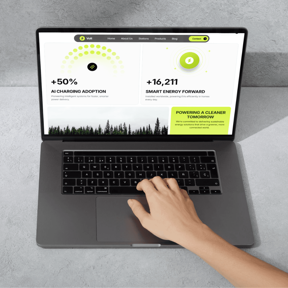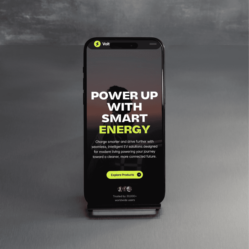 For VoltUp, an innovative Canadian company in the smart EV charging space, we designed a modern, technologically advanced web platform. The goal was to create a digital experience that clearly communicates their vision of sustainable energy, AI technology, and global growth, while also feeling fast, professional, and trustworthy.