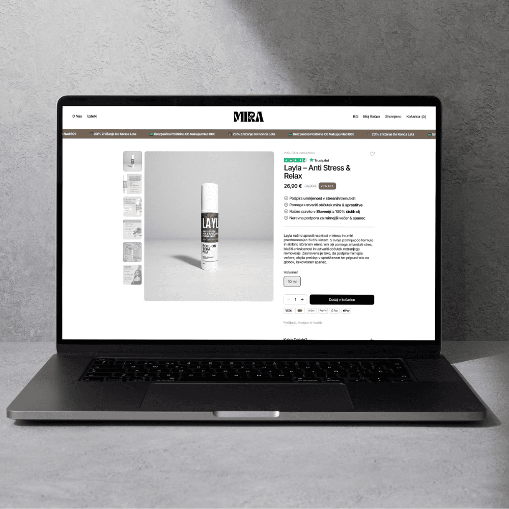 MIRA Body&Mind ni klasična spletna trgovina, je digitalna izkušnja. V zgolj 18 dneh smo zasnovali in zgradili popolnoma prilagojeno premium e-commerce platformo, kjer se vrhunski dizajn, globok storytelling, brezhibna tehnična arhitektura in močna SEO strategija združijo v enoten, miren in izjemno prepričljiv spletni prostor.
